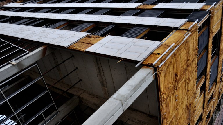 Apartotel en Parque del Agua que no se llegó a terminar para la Expo Zaragoza 2008, actualmente oKupado por las aves; eran los años del sueño-burbuja, del crecimiento infinito y el inicio del conocimiento general de una gran estafa que han llamado crisis.