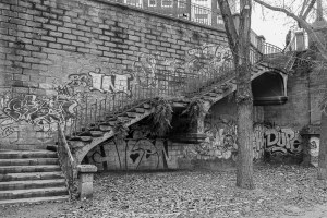 Creo saber donde se encuentra esta escalera, junto al que llamaban puente de los Gitanos en Zaragoza. Jimmy esta arriba a la derecha mir’andote. Me gusta.