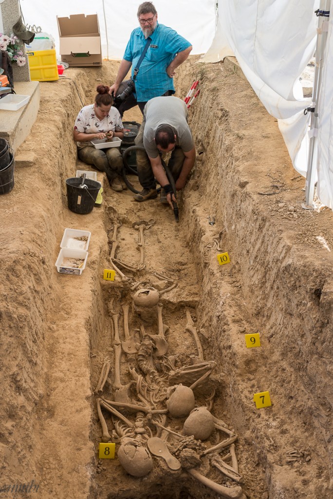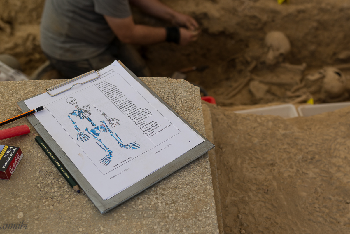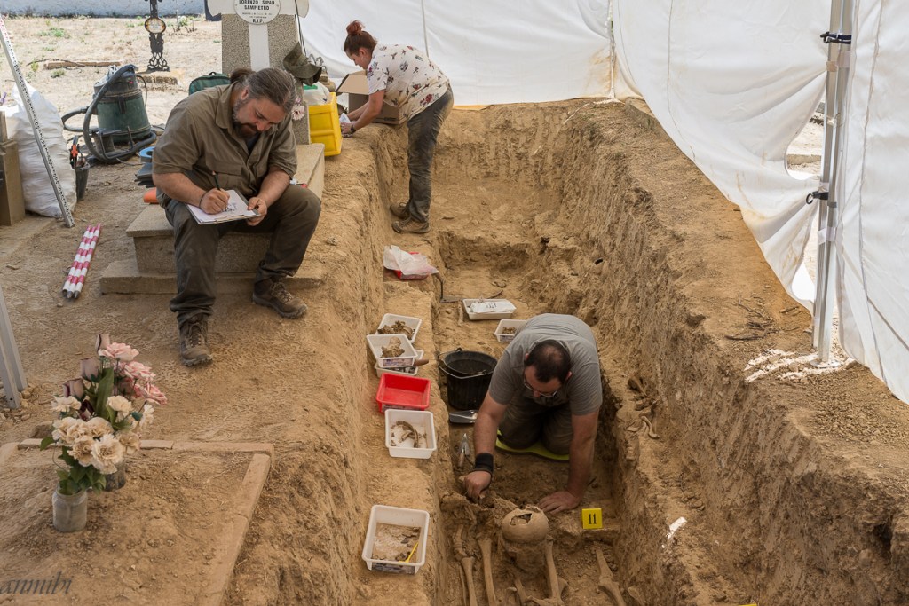 Trabajo final de la exhumación de los vecinos de Angües asesinados en la guerra Civil Española, extracción de los huesos y objetos que puedan aparecer para su clasificación y posterior estudio. Seguirán las pruebas de ADN y entrega de restos a sus familiares. Nada de esto sería posible sin el empeño y trabajo de asociaciones memorialistas como A.R.I.C.O, CIRCULO REPUBLICANO MANOLIN ABAD DE HUESCA, BATALLON CINCO VILLAS DE EJEA DE LOS CABALLEROS y CHARATA DE UNCASTILLO. El motor de estas asociaciones son personas como Miguel Ángel, Javier, Nacho y Cristina (por las que siento una gran admiración) y que mañana mismo tendrán la satisfacción de poder decir «una fosa menos».
