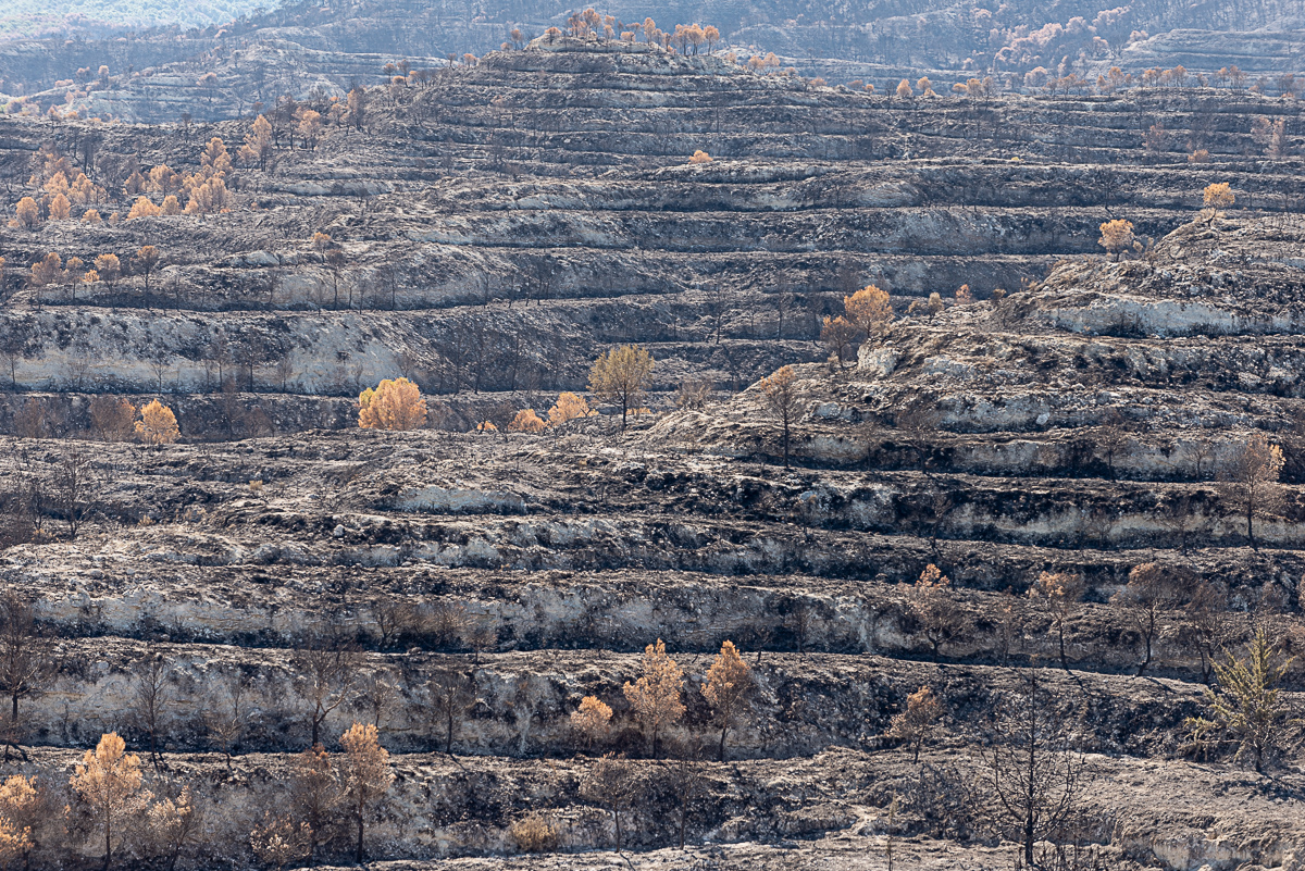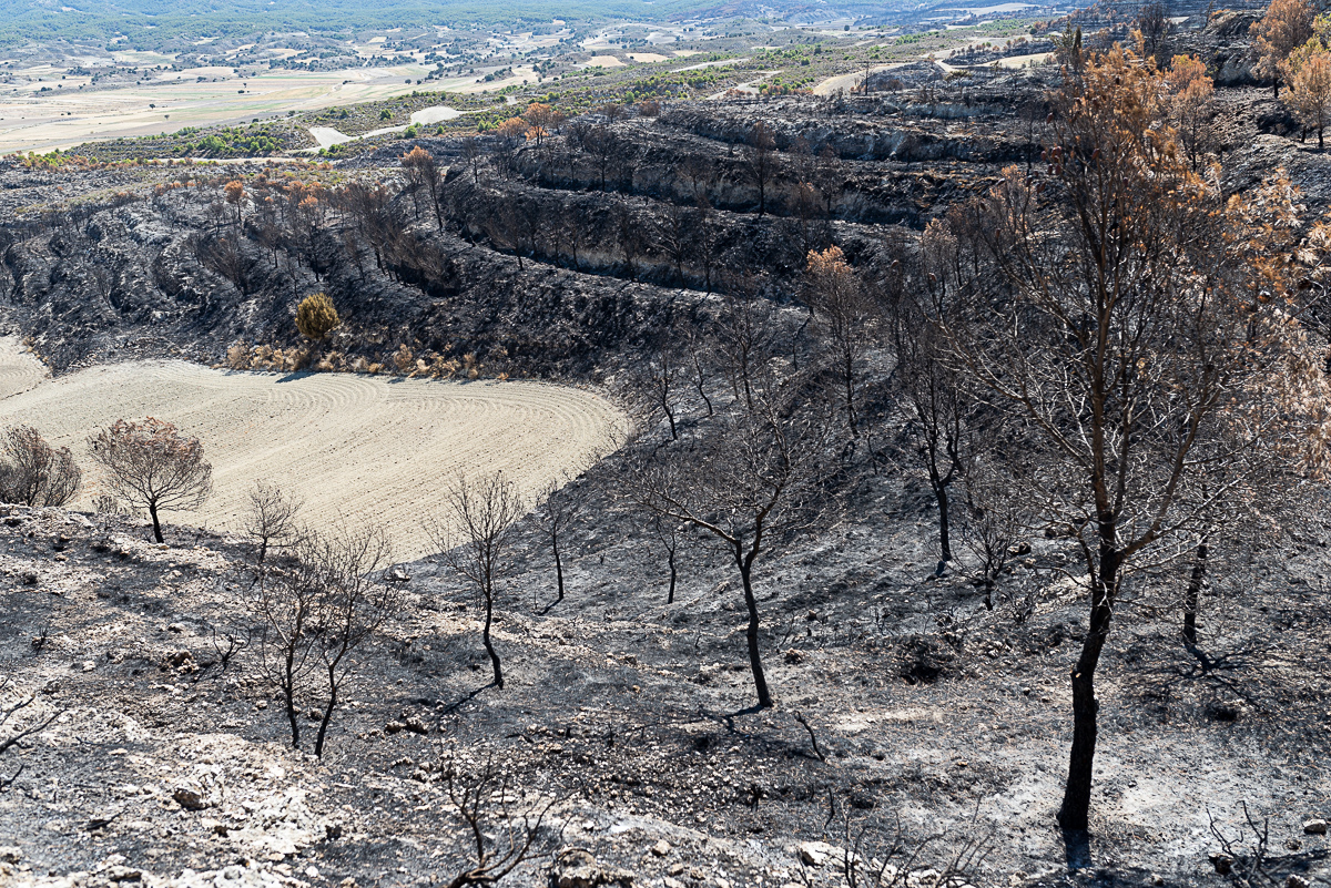 En la Sierra de Alcubierre, un incendio quema 1.200 ha, una persona mayor de la localidad me decía que él no volverá a verlo como estaba antes del fuego (ni nadie de los presentes).