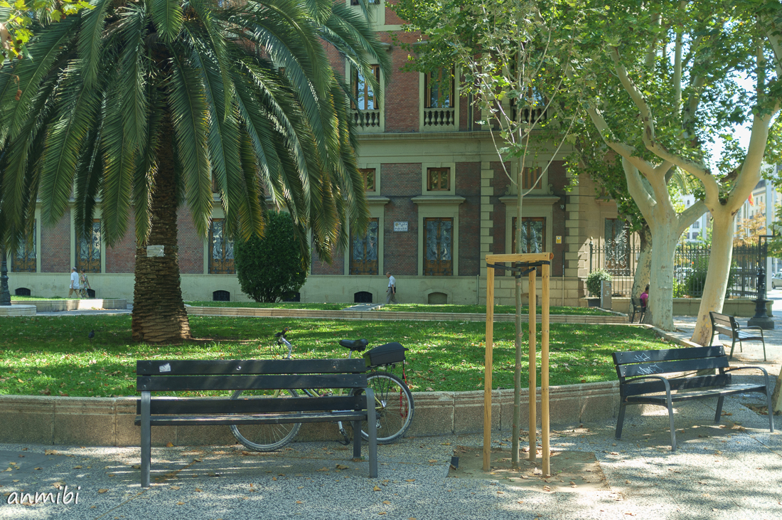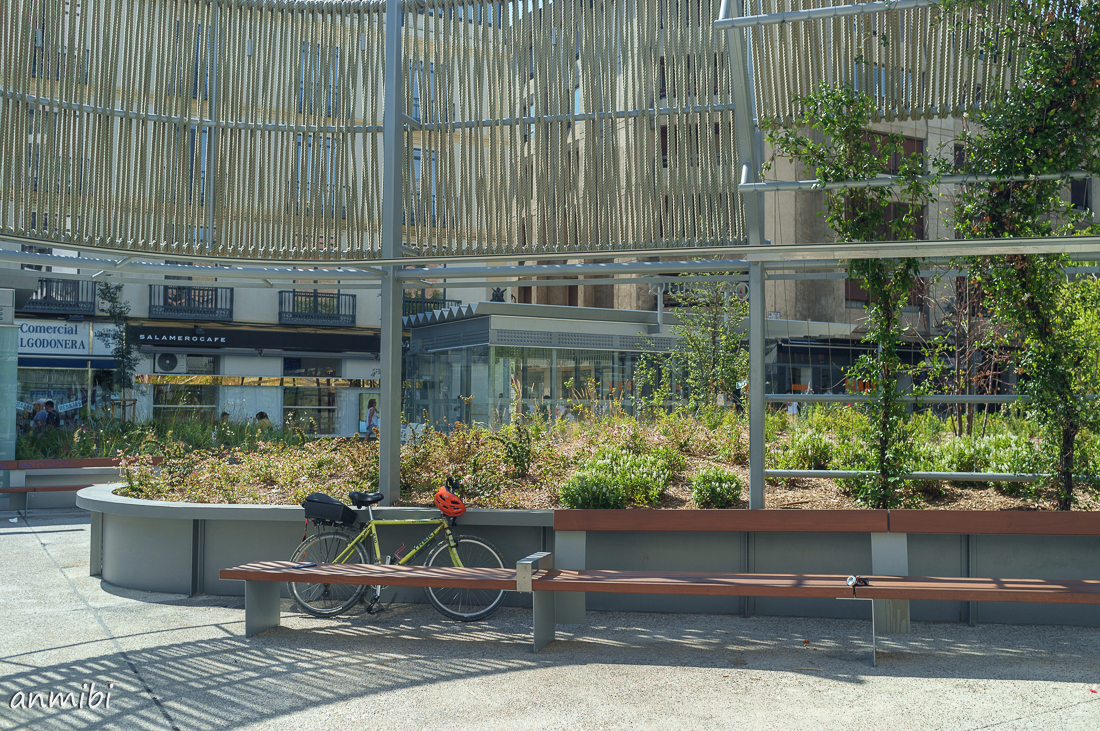 Temperature in the shade in Plaza Salamero of recent transformation to steel and concrete base.Square free of vehicular traffic