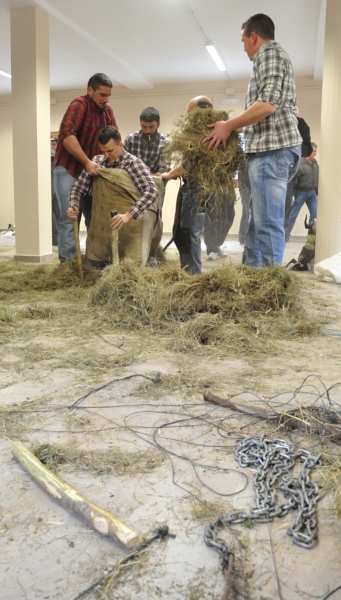 Onso, rellenando la»piel»del oso con hierba y las cadenas del domador